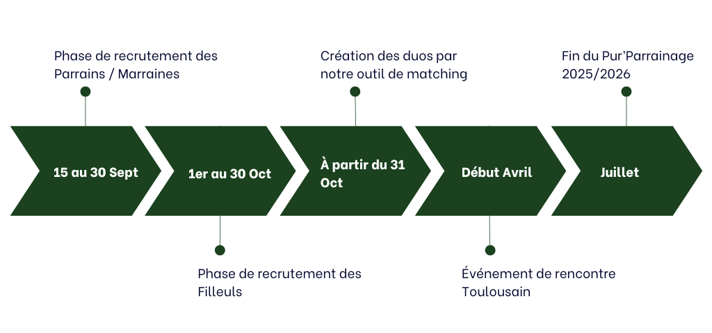 ⚠️ Important : le binôme est fixe pendant toute la durée du programme, il n’est pas possible de changer de parrain, marraine ou filleul(e) en cours de route. L’idée est de miser sur la stabilité et la richesse d’un lien qui se construit dans la durée.